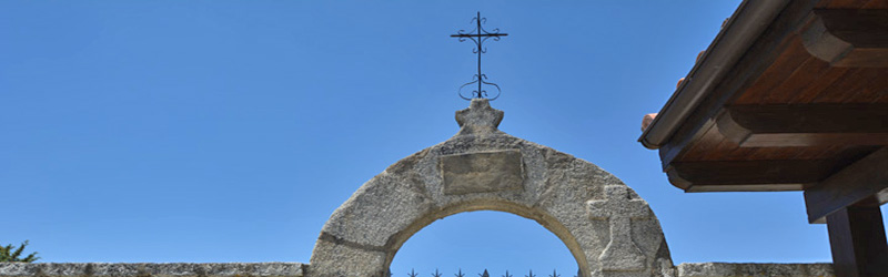 Desde aqui nos dirigimos cruzando la M-127 por la Travesía de la Soledad para encontrarnos con la carretera del cementerio para ver la portada de acceso al cementerio. Se trata de la misma que tuviera el cementerio antiguo situado junto a la desparecida Ermita de la Soledad. Está construida completamente en granito con arco de medio punto poseyendo en uno de sus laterales una cruz tallada.