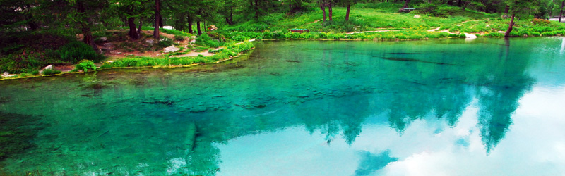 De vuelta y a unos pocos kilómetros de Breuil, observamos a nuestra izquierda un cartel señalando un punto de interés con el nombre de Lac bleu. Aparcamos el coche en un pequeño espacio que vimos, y a escasos diez metros apareció un pequeño Lago que parecía sacado de un cuento de hadas. Sus aguas transparentes de un color azul verdoso, te invitaban a sentarte y permanecer allí todo el tiempo posible, pero nos esperaban 166 kilómetros y cerca de tres horas de conducción por lo que muy a nuestro pesar abandonamos aquel lugar idílico.
