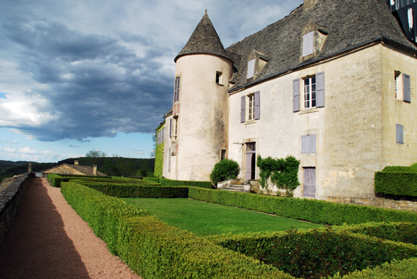 El adjetivo de Jardines colgantes viene dado por que se encuentran en un peñasco de 180 metros de altura sobre el río Dordogne teniendo una extensión de 22 hectáreas. Nada más comenzar la visitar se empiezan a ver los Bojes esmeradamente cuidados y podados, según dicen el recinto cuenta con 150.000 ejemplares de los mismos.