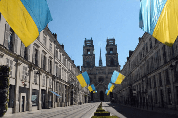 Con la ayuda del GPS nos dirigimos al centro de la ciudad cuando ya caía la tarde, aparcado el coche en la Rue Bannier, una de las calles que va a converger en la Place du Martroi y a escasos metros de la Catedral de Sainte-Croix. Nuestro primer objetivo era visitar este monumento eclesiástico y para eso nos situamos en la Rue Jeanne d’Arc , desde donde se puede observar el lateral impresionante de la Catedral, con sus dos torres monumentales en forma de cilindro en su parte superior.